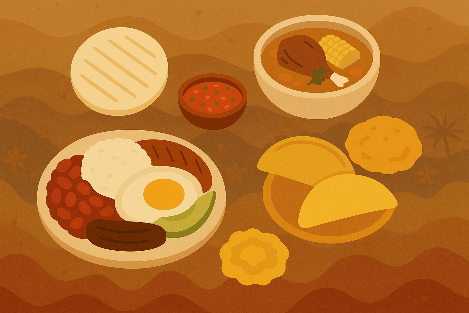 Descubre los sabores tradicionales de Colombia: bandeja paisa, sancocho, ajiaco, arepas, empanadas y muchos más.
